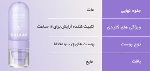علاوه بر این، اسپری فیکس بنفش دارای خاصیت آنتیاکسیدانی است که از پوست در برابر آسیبهای محیطی محافظت میکند. این ویژگیها باعث میشوند که این اسپری نه تنها به عنوان یک تثبیتکننده آرایش، بلکه به عنوان یک محصول مراقبتی نیز مورد استفاده قرار گیرد. برای بهترین نتیجه، اسپری را به طور یکنواخت روی صورت پخش کنید و اجازه دهید خشک شود. همچنین این مدل بنفش اسپری فیکس شیگلم قابلیت تثبیت آرایش تا 16 ساعت را دارد.